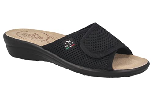 Fly Flot CIABATTA DA DONNA IN TELA con STRAPPO Sottopiede imbottito anti-shock in pelle