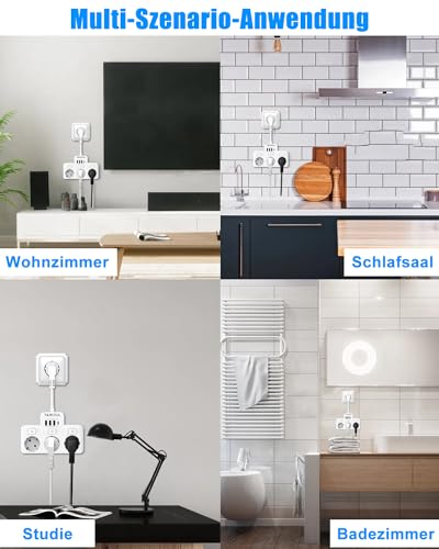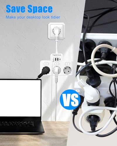 Ciabatta elettrica commutabile singola, 3 prese, con interruttore, USB C, presa multipla con interruttore (bianco)