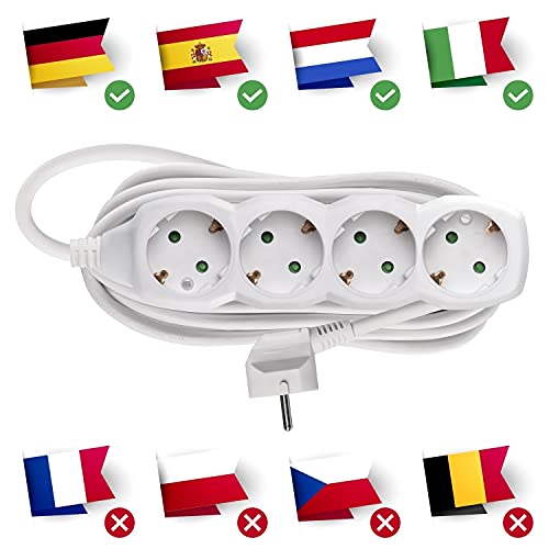 EMOS - Ciabatta elettrica a 4 prese, cavo bianco, prese ruotate a 45°, 1,5 mm, Schuko, con sicurezza per bambini, IP20, per interni 5 m