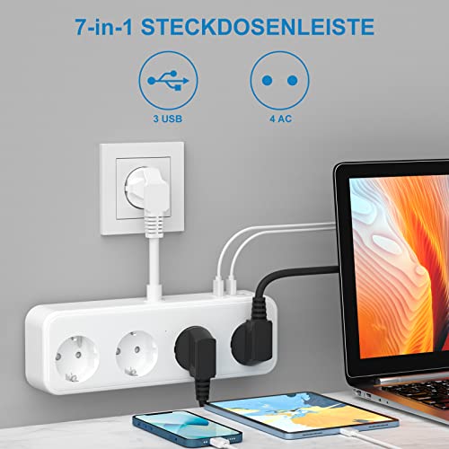 Ciabatta elettrica a 4 prese, con USB, multipresa con 3 USB (5 V/3,1 A), presa multipla per presa, adattatore 7 in 1, per camera da letto, viaggi e ufficio, colore: bianco
