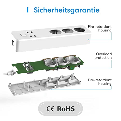 【Sicurezza assoluta】Utilizzando circuito di protezione da sovraccarico, custodia ignifuga PC&ABS, coperture a prova di bambino, cavo di alimentazione da 1,8 m e cavo di alimentazione in rame AWG da 1,5 mm² per garantire la massima sicurezza. (La nostra striscia di potere intelligente ha superato un'ispezione di sicurezza.)