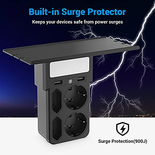 【Protezioni contro le sovratensioni】Prese multiple USB con protezione da sovraccarico sicura, costruite con materiale resistente al fuoco, evitare il rischio di scintille o deflagrazione a causa di adattatori inferiori. Ogni interfaccia CA dispone di un cancello di sicurezza per bambini integrato per impedire che i bambini ricevano scosse elettriche