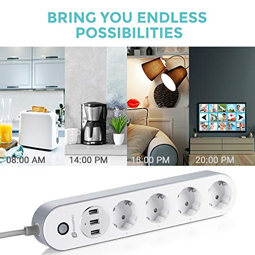 Ciabatta Multipresa, Houzetek Multipresa Ciabatta Elettrica con protezione Supporta Alexa/Google Home/IFTTT, Con 4 Prese Polivalenti e 3 Prese Usb,2.4G Wifi.