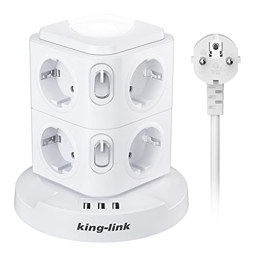Ciabatta Multipresa Verticale Con 3 USB e 8 Prese EU(2500W/10A),Multipresa Verticale Con Luce Notturna,Torretta Multipresa con Protezione Sovraccorrente,Cavo 2M Bianca,2 Interruttore...