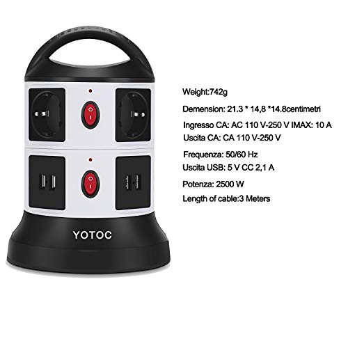 Ciabatta Multipresa, YOTOC Multipresa Ciabatta Elettrica Surge Ptotector Con 6 Prese Polivalenti Interruttore indipendente e 4 Prese USB per Smart Phone, Tablet, Laptop