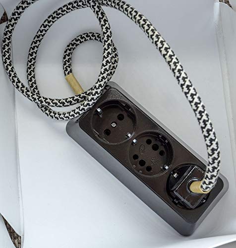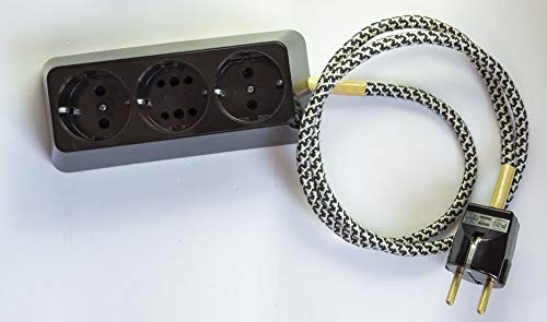 Ciabatta a 3 prese in bachelite bruckig ottone con cavo in tessuto 1,1 m