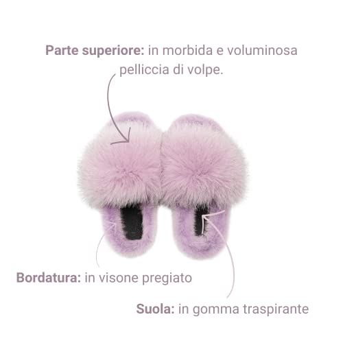 Ciabatta Slipper in Vera Pelliccia di Volpe e visone | Art. Aspen | Ciabatta Donna Pelliccia di Volpe e visone Suola Traspirante 100% Made in Italy Rosa Taglia 36