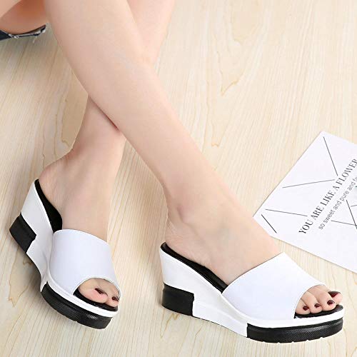 B/H Ciabatte Antiscivolo Scarpe Estive All'aperto,Scarpe da Donna di Piccole Dimensioni con Tacco a Zeppa, Sandali Casual con Plateau e Pantofole, Antiscivolo-White_37,