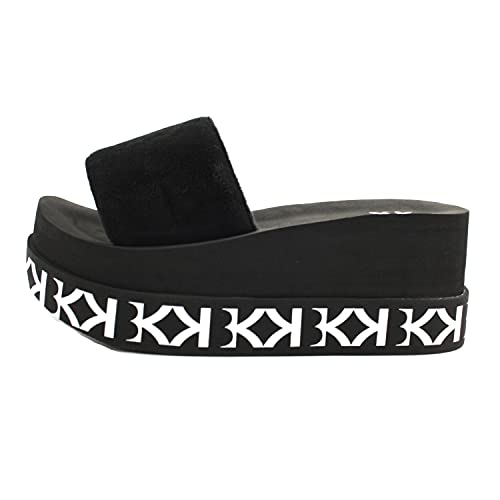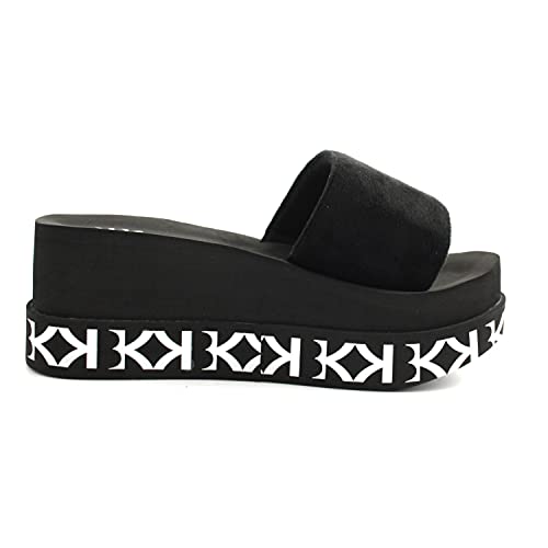 KBK ciabatte donna KRISBY BLACK gomma e ciniglia nera. zeppa, taglia 35