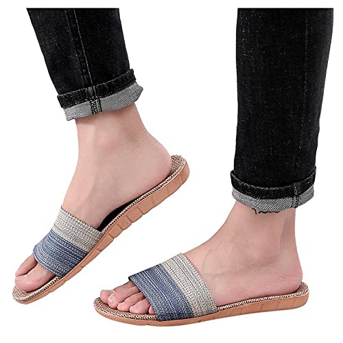 Ciabatte Donna Pantofole Di Lino Da Uomo Infradito In Canapa A Righe Sandali Piatti Antiscivolo Pantofole Da Casa Maschile Casual Scarpe Da Spiaggia In Lino Al Coperto-Green_11_Us