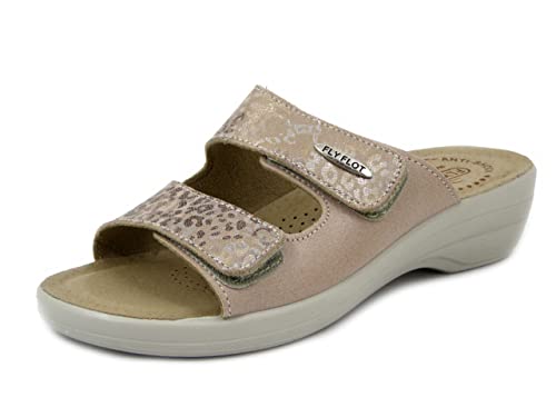 Fly Flot Ciabatte Donna in Eco Pelle Beige, Chiusura a Strap, Sottopiede Anatomico in Vera Pelle, Zeppa Bassa, T5B18P