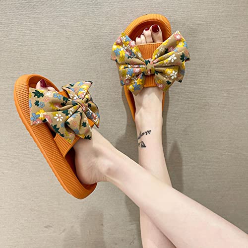 XKUN Ciabatte estive Oversized Butterfly-Nodo Decorare Le Donne All'Aperto Spiaggia Antiscivolo Pantofole Donna Sandali Solidi Sandali Estivi Estate Scarpe da Donna-Orange,36-37