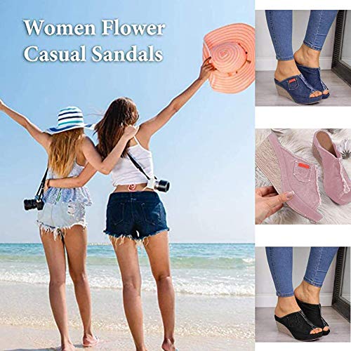 ☀☀ DESIGN SPECIALE: design a zeppa in tela di jeans con fondo spesso in stile nazionale con zeppa diritta, confortevole e non stanca, la scarpa ha una suola resistente all'usura che ti mantiene elegante mentre ti tiene al sicuro. l'aggiunta di un design classico alla tendenza degli elementi ti mantiene elegante mentre consente alle scarpe di durare per sempre, dandogli un periodo di prova più lungo, molteplici modi di utilizzo