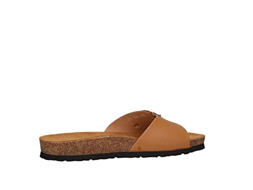 Frau, Ciabattina Casual Donna, 17R0, in Pelle Color Cuoio, Fodera in Microfibra, con Fibbia Color Oro Semiquadrata, Plantare Anatomico in Sughero Rivestito in Pelle, Suola in Micro, 39, Made in Italy