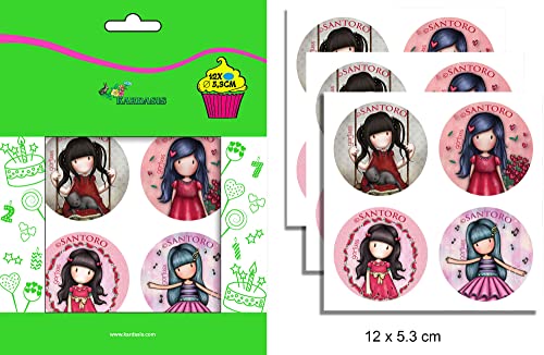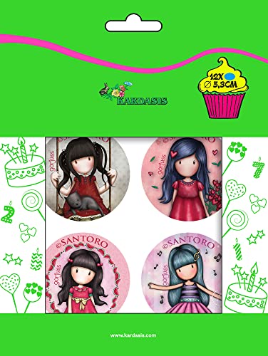Cialda per cupcake Santoro Kardasis | Porte decorativa commestibile | Divertenti decorazioni per torte di compleanno a tema Santoro | 5,3cm x 12 cialda