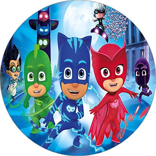 Cialda rotonda per torta Super Pigiamini Gattoboy Geco Gufetta decorazione alimentare senza glutine personalizzazione grafica inclusa topper cake design img 05 (Ostia, 16 cm)