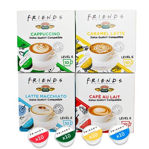 Cialde Compatibili "Friends" Central Perk Dolce Gusto - Latte Macchiato, Cafe Au Lait, Cappuccino & Caramel Latte - 40 Capsule