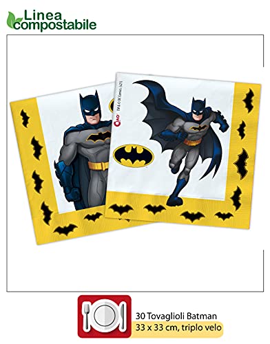 Ciao- Tovaglioli Carta FSC compostabili Batman (33x33cm, Triplo Velo), 30 Pezzi, Giallo,Grigio,Bianco, 20223