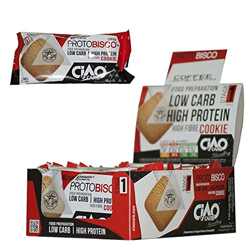 5x CIAOCARB PROTOBISCO STAGE 1 50g (GUSTO CAFFE') 5 CONFEZIONI DA 50g (TOTALE 10x25g) LOWCARB HIGH PROTEIN + OMAGGIO 2x BOLERO STICK 3g PEAR - NT INTEGRATORI
