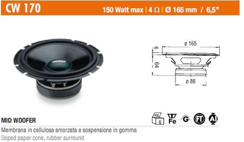 CW 170 Z CIARE WOOFER AUTO ALTOPARLANTE 120 WATT ø 165 mm HIFI IMPIANTO STEREO