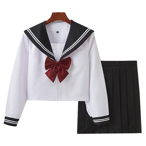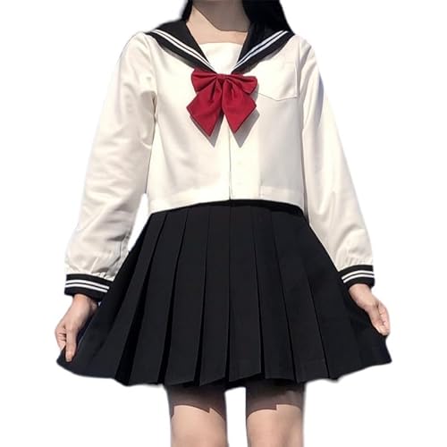 CICCB-DAMOY Nuovo di zecca Uniforme da Marinaio Uniforme da Studentessa Giapponese Abito uniforme JK, Cosplay di Halloween Carnevale Anime,camicia + gonna + papillon rosso (Bianco, XL / 160-170cm)