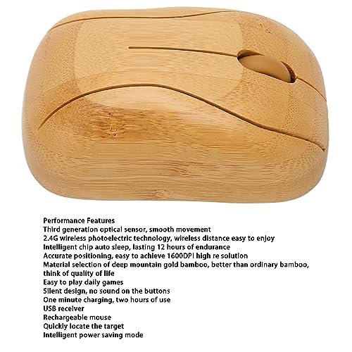 Ciciglow Mouse Wireless, Dispositivi Wireless per Computer a 2,4 GHz con Ricevitore USB Mouse Confortevole in Legno di bambù Mouse Silenzioso per Lavoro Studio Tempo Libero