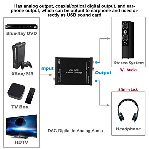 Ciciglow Scheda USB, GV-023 Convertitore DAC USB Uscita Coassiale/Ottica/Stereo Adattatore per Scheda USB da Digitale Ad Analogico