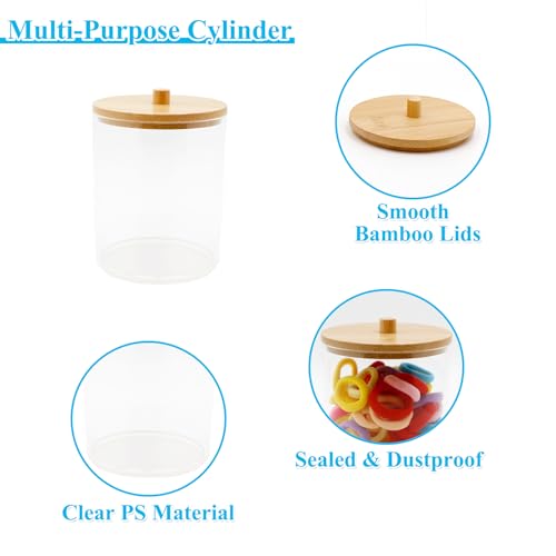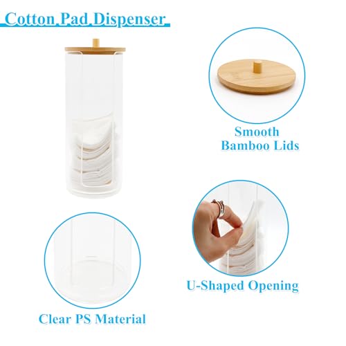 CiciIng 3 contenitori per batuffolo di cotone e dispenser per dischetti di cotone e cilindro multiuso con coperchi in bambù, scatola trasparente per bastoncini di cotone, palline di cotone