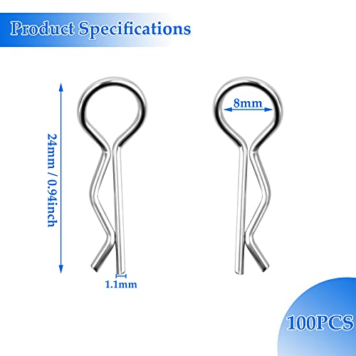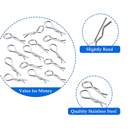CiciIng 100 pezzi RC carrozzeria clip, acciaio inox R tipo pin per 1/10 telecomando auto shell modello di ricambio, argento corpo shell clip, clip corpo corpo corpo splinte staffe