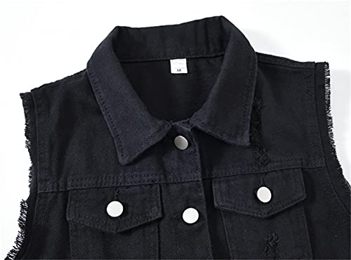 Cicilin Gilet da Donna in Denim Giacca Corto Senza Maniche Lavato Strappato Nero 4XL