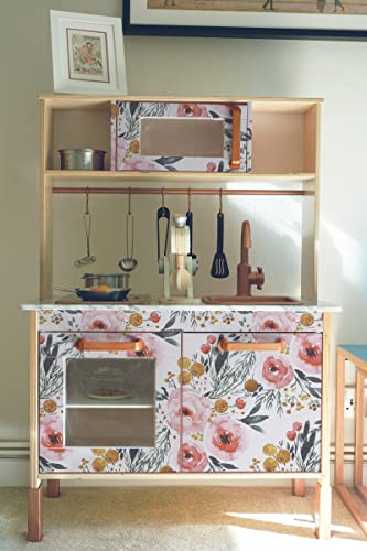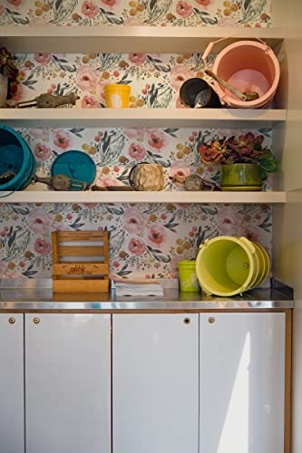 Carta da parati autoadesiva. Facile da applicare: autoadesiva. Basta rimuovere la pellicola e attaccare. La nostra carta da parati floreale ha linee a griglia sul retro, facili da misurare e tagliare.