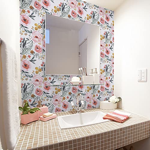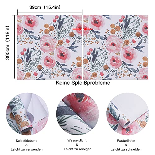CiCiwind Carta da parati autoadesiva rosa bianco fiori carta da parati 39 × 300 cm motivo floreale pellicola adesiva impermeabile adesivo da parete per camera da letto soggiorno mobili in vinile