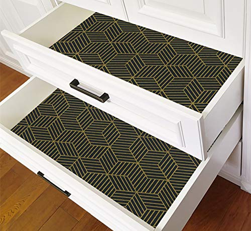 CiCiwind Pellicola nera per mobili e strisce geometriche dell'oro esagonale, autoadesiva, impermeabile, per mobili, pareti, mobili, stanze, vinile, 40 x 300 cm