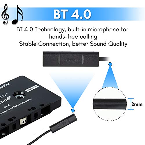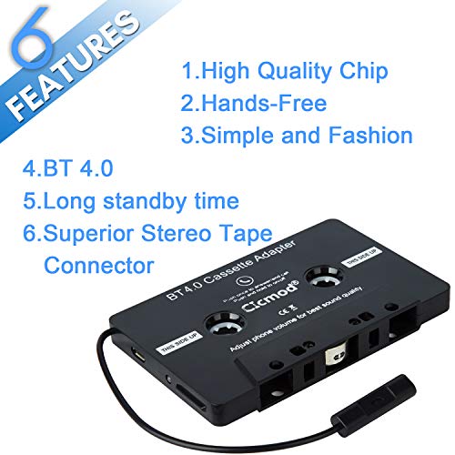 CICMOD Adattatore Cassetta Autoradio de BT 4.0 con Microfono per Chiamate in Vivavoce Nero