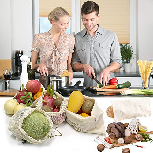 【CONTATTO SICURO CONTATTO CON ALIMENTI SENZA TOSSINE】 I nostri sacchetti di verdure per la spesa sono realizzati in cotone biologico, che è inodore, senza BPA, senza piombo, senza mercurio e sicuro per il contatto con gli alimenti. La sicurezza viene prima di tutto, 100% cotone naturale, la scelta migliore per i sacchetti della spesa. Questi sacchetti riutilizzabili sono un'alternativa semplice ai sacchetti di plastica monouso per frutta e verdura durante lo shopping.