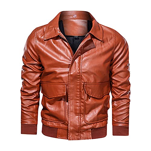 CIDCIJN Giacca In Pelle Da Uomo - Primavera Autunno Pelliccia Colletto Staccabile Giacca In Pelle Uomo Grandi Tasche Moto Bomber Giacca In Pelle Uomo Pu Cappotti Semplice Biker Giacca, Giallo,Xl
