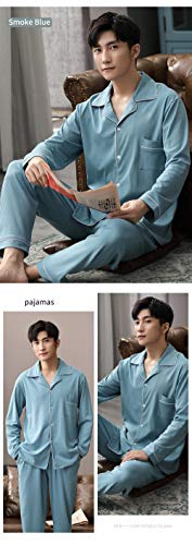 CIDCIJN Pigiama da Uomo Intero Set,Pigiama di Cotone per Uomo Maniche Piene Inverno Pijama Button-Down Sleepwear 2Pcs Uomo Cotone Nightwear Pj Set Pigiama, Fumo Blu,3XL