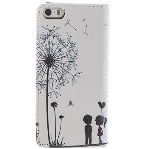 Cidimi - Custodia a libro in pelle per iPhone 5/5S, con funzione di supporto, scomparto porta tessere, pennino capacitivo e pellicola di protezione, motivo acchiappasogni indiano