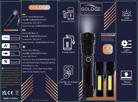 La confezione include un P50 torcia lED 1500 Lumens, 5 modalità di messa a fuoco regolabile: (high, medium, low, strobe, SOS/emergency): due mimi COB regolabile portatile torcia, 3 modalità (XPE high beam, XPE strobe Light, COB side light è acceso). Una batteria 26650 utilizzata per la torcia P50. Due cavi di ricarica USB.