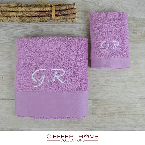 Cieffepi Home Collections art. MOOD PERSONALIZZATO - Set 2 Asciugamani (Viso + Ospite) personalizzabile con nome Biancheria da bagno (Glicine)