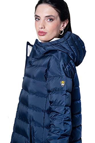 CIESSE PIUMINI HEKA - Piumino Lungo con Cappuccio Imbottito in Piuma 800 Fill Power in Tessuto Cady Pearl (Blu/Sabbia, 42)