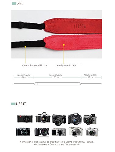 Questa cinghia disegno unico e simpe pu? essere collegato a telecamere mirrorless, fotocamere reflex e fotocamere RF che ha una misura buco cinghia 1 centimetro o pi?