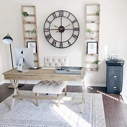 CIFFOST Grande Orologio da Parete in Metallo Stile Europeo Retro Orologio da Parete con Numeri Romani Muto Muto Funzionamento a Batteria Cucina Soggiorno Camera da Letto Decorazione Loft-Nero_47 cm