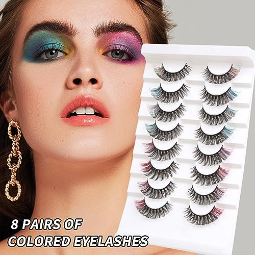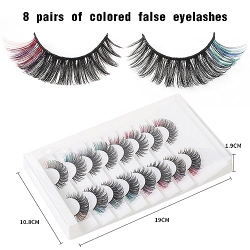 8 Paia Ciglia Finte Colorate, Ciglia Finte Naturali Fake Lashes, Ciglia Lunghe e Soffici Fatte a Mano per il Trucco Degli Occhi, 5D False Eyelashes per il Trucco Degli Occhi