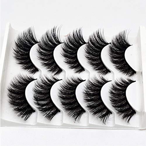Ciglia finte Elocoise 5 paia di ciglia 3D Ciglia artificiali lunghe fatte a mano riutilizzabili per il trucco degli occhi (3D-52)