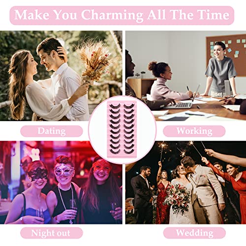 10 Paia di Ciglia Finte 3D, Extension Ciglia Finte Naturali Ciglia Finte con Clip per Ciglia, Ciglia a Strisce Russe Ciglia Wispy Soffici per Trucco Occhi (B)