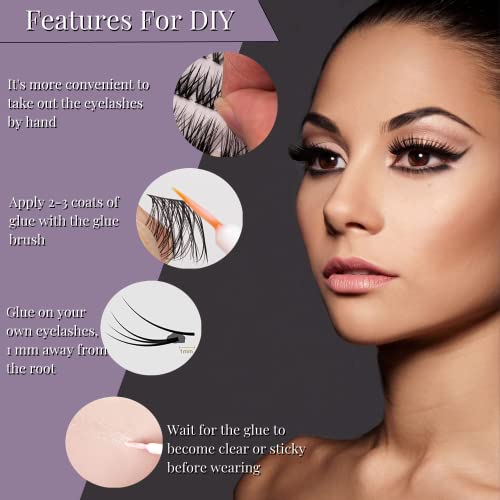 【MODO VELOCE PER APPLICARE LE CIGLIA】 Tieni la fascia di ciascuna ciglia con una pinzetta e applica le ciglia a grappolo sotto le ciglia naturali dopo aver applicato la colla per ciglia, a 1 mm dalla radice delle ciglia. La fascia per ciglia singole utilizza la tecnologia hot melt, che è molto morbida e piatta. Quando sbatti le palpebre, il nastro per ciglia finte non renderà il tuo prodotto scomodo e la leggera estensione delle ciglia ti farà sentire come le tue stesse ciglia.