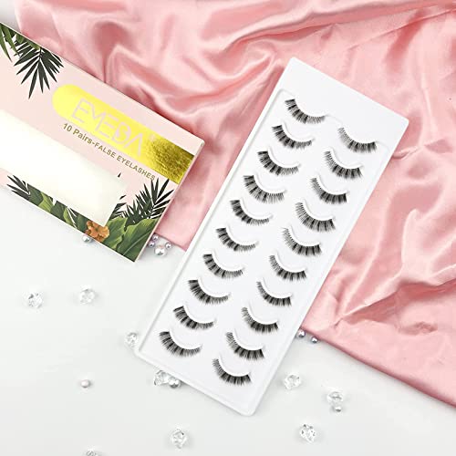 10 paia di ciglia finte 3D naturali Ciglia fatte a mano al 100% Ciglia Wispies corte morbide e riutilizzabili per il trucco degli occhi banda trasparente Natural eyelashes
