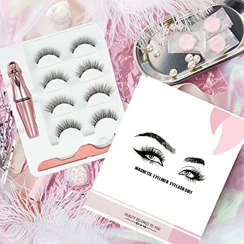 Ciglia Magnetiche, 4 Paia Ciglia Finte Magnetiche e Eyeliner Magnetico Kit, Naturali 3D e Di Lunga Durata, Di Ciglia Finte Riutilizzabili Senza Colla