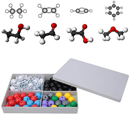 FACILE COSTRUZIONE DI MOLECOLE: Il kit è conveniente per costruire metano (CHA), etano (H3C-CH3), etilene (H2C = CH2), acetilene (HCECH), etanolo (C2H5OH), acetaldeide (CH3CHO), acido acetico (CH3COOH), benzene (C6H6), modello di struttura molecolare della maggior parte dei composti organici come il bromuro di etile (CH3-CH2Br), alcoli, aldeidi, acidi, chetoni, acidi carbossilici, esteri, eteri, ammine, composti alogeni.